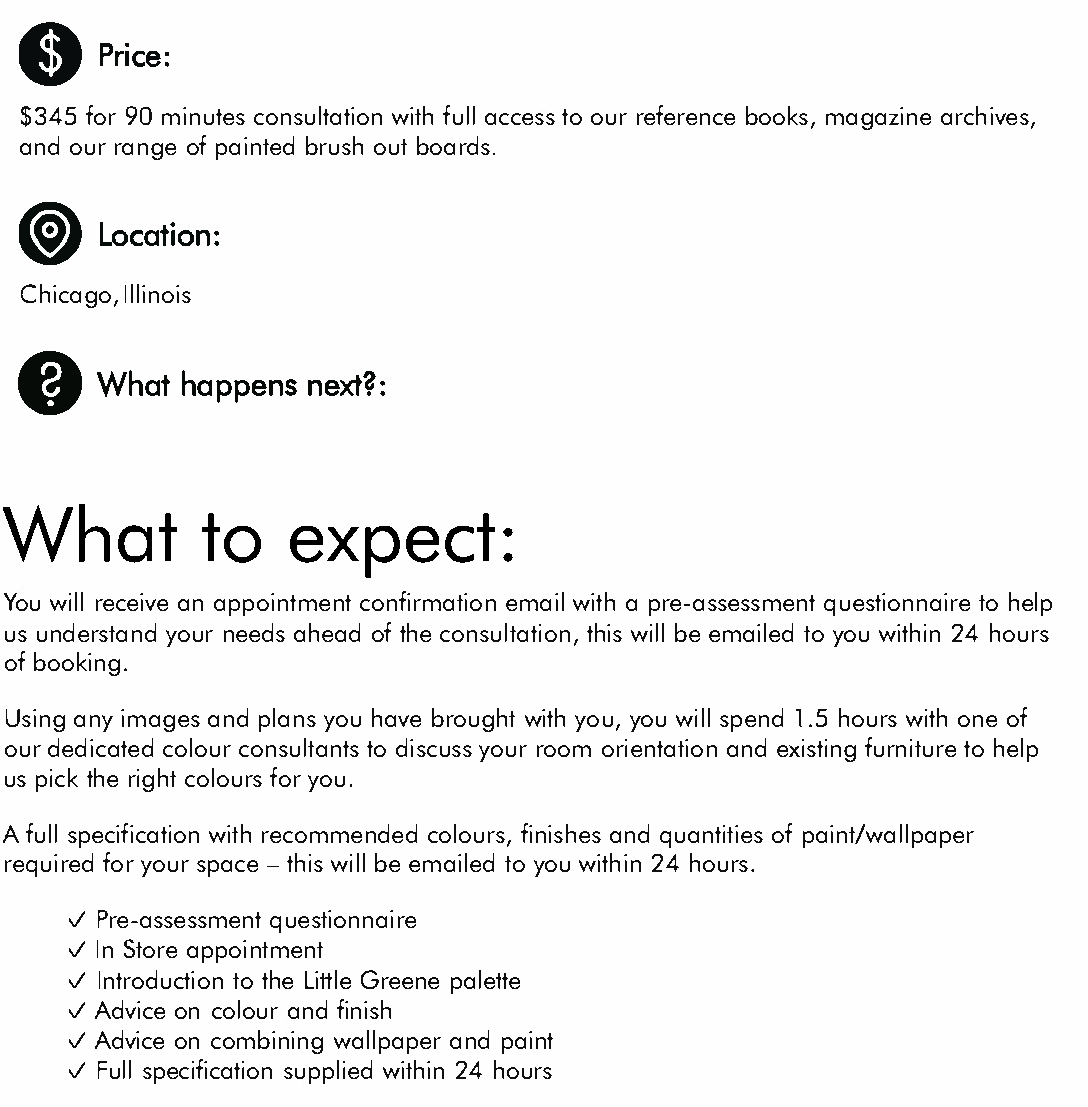 The ‘In Store’ Colour Consultancy service takes place in our Chicago, IL showroom which offers an inspiring environment where you can surround yourself in Little Greene paint and wallpaper colours and receive first-hand bespoke advice.